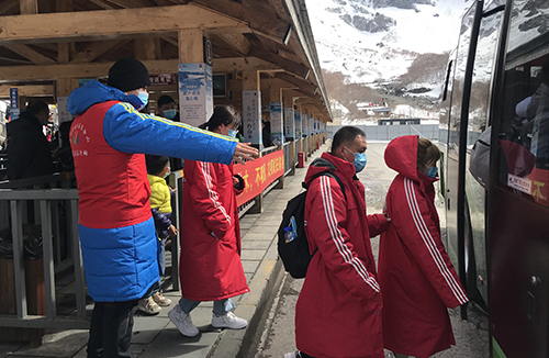 志愿者積極幫助行動(dòng)困難游客,助力圓夢大美長白。