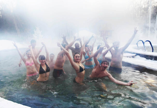 冬季-30℃寒風瑟瑟,白雪飄飄,沐浴在42℃露天溫泉中,頭上雪花飄飄,腳下熱浪滾滾。