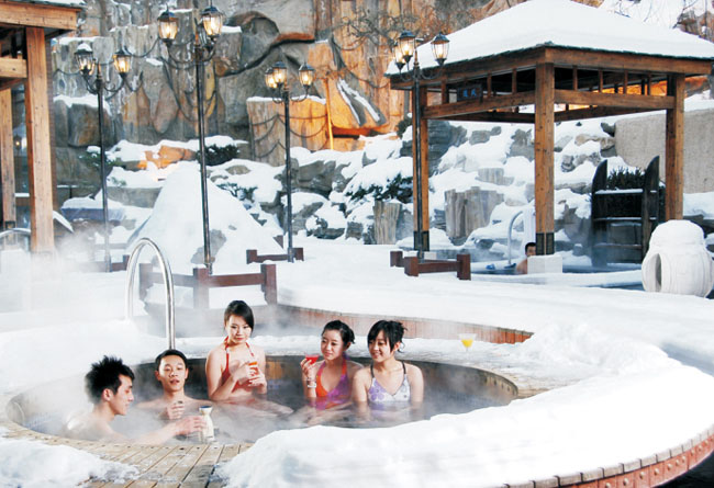 前往長白山溫泉皇冠假日酒店,入住后可體驗溫泉——長白山天池湯泉。讓頭上雪花飛舞,腳下熱浪滾滾的溫泉浴為您解除一天的勞累。