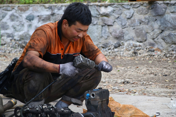 為了全力配合前勤安全生產(chǎn)工作,加班到最后的物資供應(yīng)部、檢修部、加油站的同事們更是全力以赴:烈日下的檢修工認(rèn)真檢修每個(gè)零件,滿臉油漬遮不住修理成功后的笑容;加油員竄梭在各加油口,縮短車輛加油的等待時(shí)間,即使漫天的大雨阻擋不住他們的腳步;提前備下充足的物資,想駕駛員之所想,物資部的員工更是貼心服務(wù),記錄隨人走確保出庫(kù)領(lǐng)取記錄不遺漏;當(dāng)最后一批收尾員工吃完晚餐時(shí)就已經(jīng)是九多點(diǎn)鐘了,在很多人已經(jīng)進(jìn)入夢(mèng)鄉(xiāng)時(shí),食堂員工還要做最后的整理工作。沒(méi)有華麗的修飾,樸實(shí)、勤勞的他們?yōu)槁糜瓮痉瞰I(xiàn)自我。