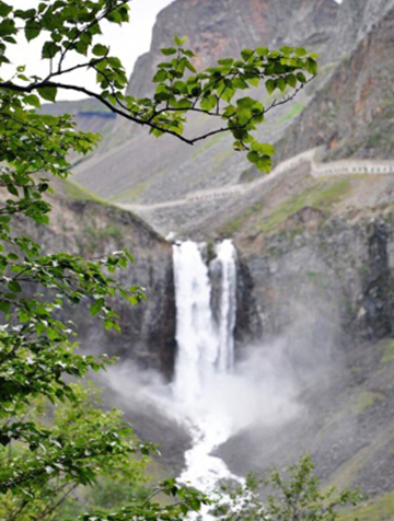 群山環(huán)繞的天池,在天豁峰與龍門峰之間有一陡峻的切口,池水平緩流出,過牛郎渡,接納了四大股冷泉,水量增大,在斷崖前被巨石分切成兩股,一躍而下,跌落68米。瀑布水色皓白,懸墜在陡峻的青石峭壁上、騰煙起霧,常年飛瀉不息,跌落處,拓臼成二十多米的深潭,轟鳴聲撼天動地;激流匯集處,是二道白河及松花江的源頭。長白飛瀑,是長白山眾多景致中的點睛之筆。