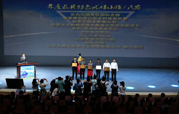 長白山池北區(qū)區(qū)委書記牛明君上臺領(lǐng)取年度最具特色風情小鎮(zhèn)民宿獎
