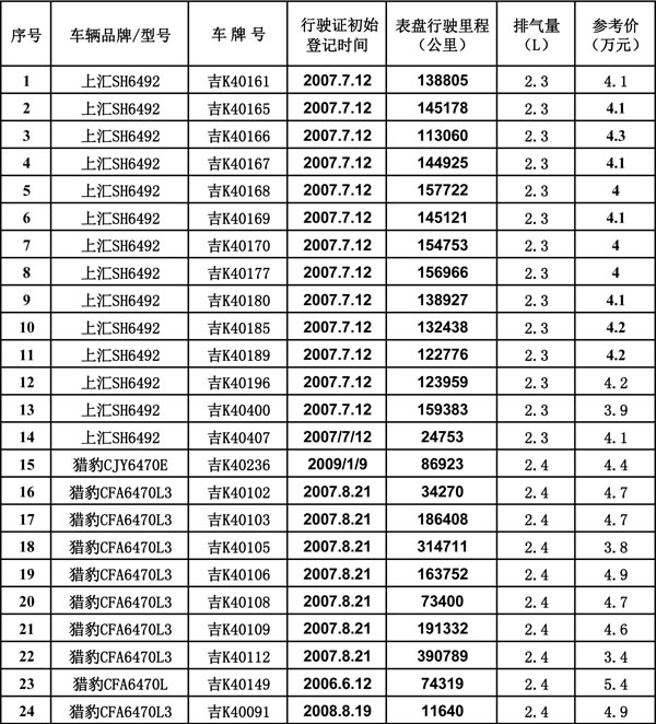 吉林省天池拍賣有限責(zé)任公司接受委托,將對以下53輛機動車進行公開拍賣