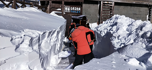 大雪足足下了兩天,給景區(qū)的清雪防滑工作造成了很大的壓力。此刻的天池游覽棧道已經(jīng)被大雪完全覆蓋,個(gè)別區(qū)域和通往衛(wèi)生間路段的積雪有一人多高。為了能讓天池景點(diǎn)盡早開放,主峰管理部經(jīng)理吳金明決定,先將衛(wèi)生間和B區(qū)游覽棧道清開1米寬,然后在不影響游客正常游覽的情況下,再拓寬至2米,以此來保證游覽棧道的最佳通行能力。