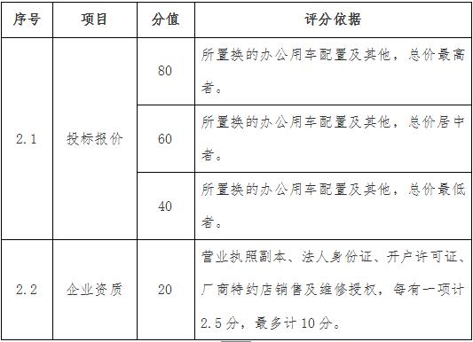 經(jīng)公司研究決定,對(duì)現(xiàn)有閑置的5臺(tái)車輛采用高于評(píng)估總價(jià)的方式置換符合標(biāo)準(zhǔn)的工作用車?,F(xiàn)擬對(duì)車輛置換進(jìn)行內(nèi)部招標(biāo),如貴公司有意參與,請(qǐng)務(wù)必詳細(xì)閱讀和理解本招標(biāo)文件所有附件(免費(fèi)索取);同時(shí),根據(jù)招標(biāo)文件的要求準(zhǔn)備投標(biāo)文件。